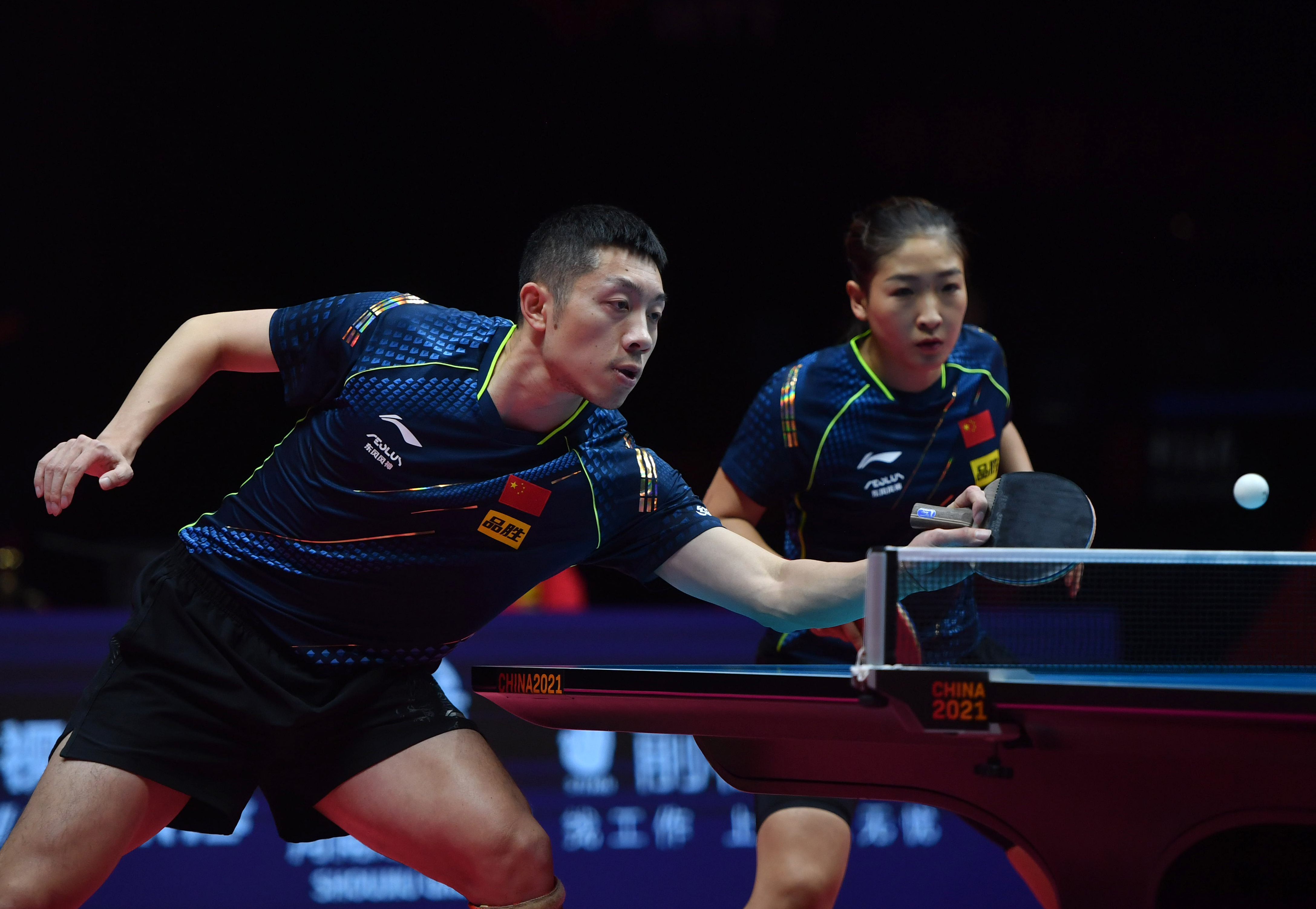 5月5日,许昕(左)/刘诗雯在比赛中。新华社记者李嘉南摄