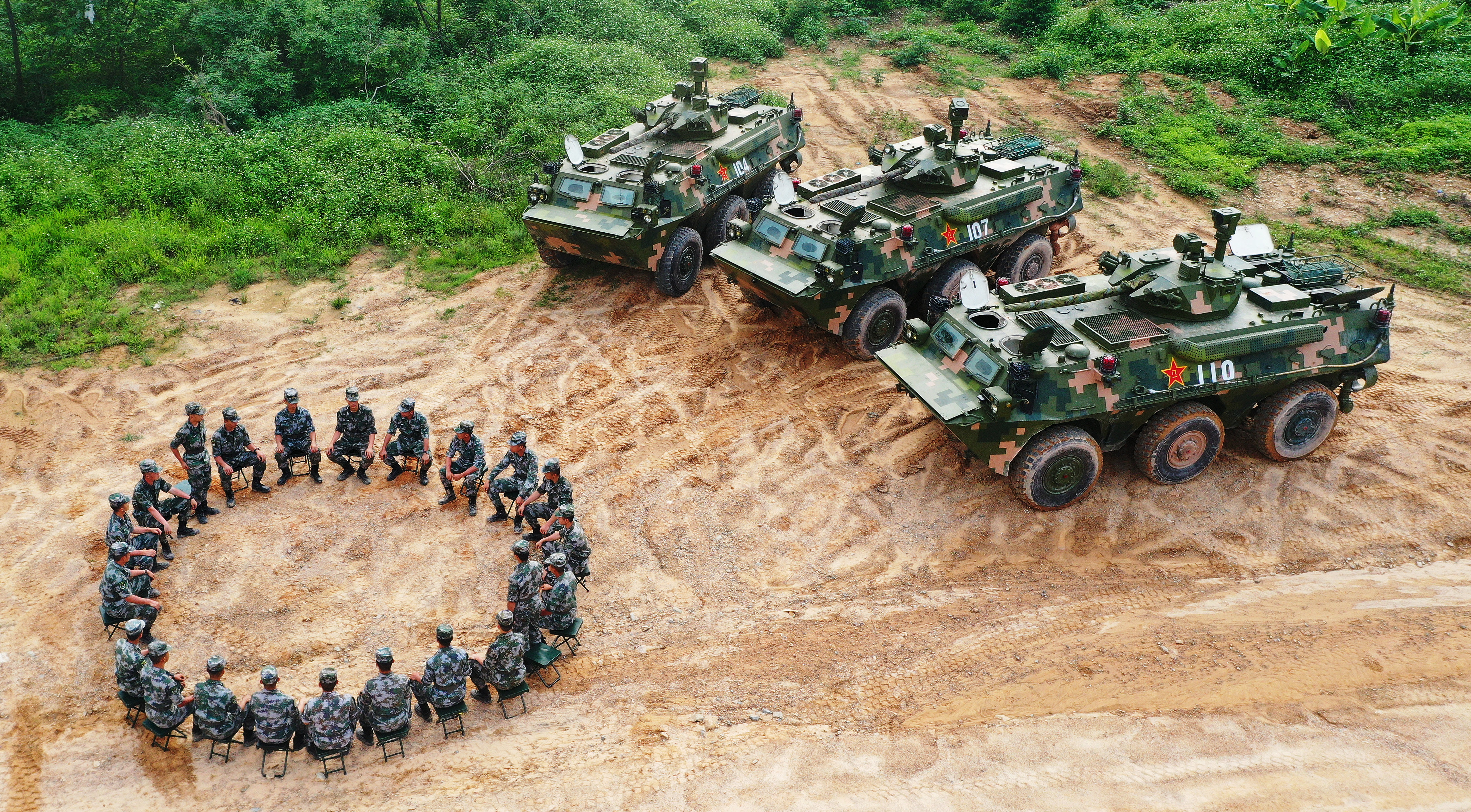 粤北某训练场,某型步战车实弹射击检验性考核现场,步战车5分钟内对6组随机出现的实体靶标进行短停射击,每次短停时间不超过8秒。
