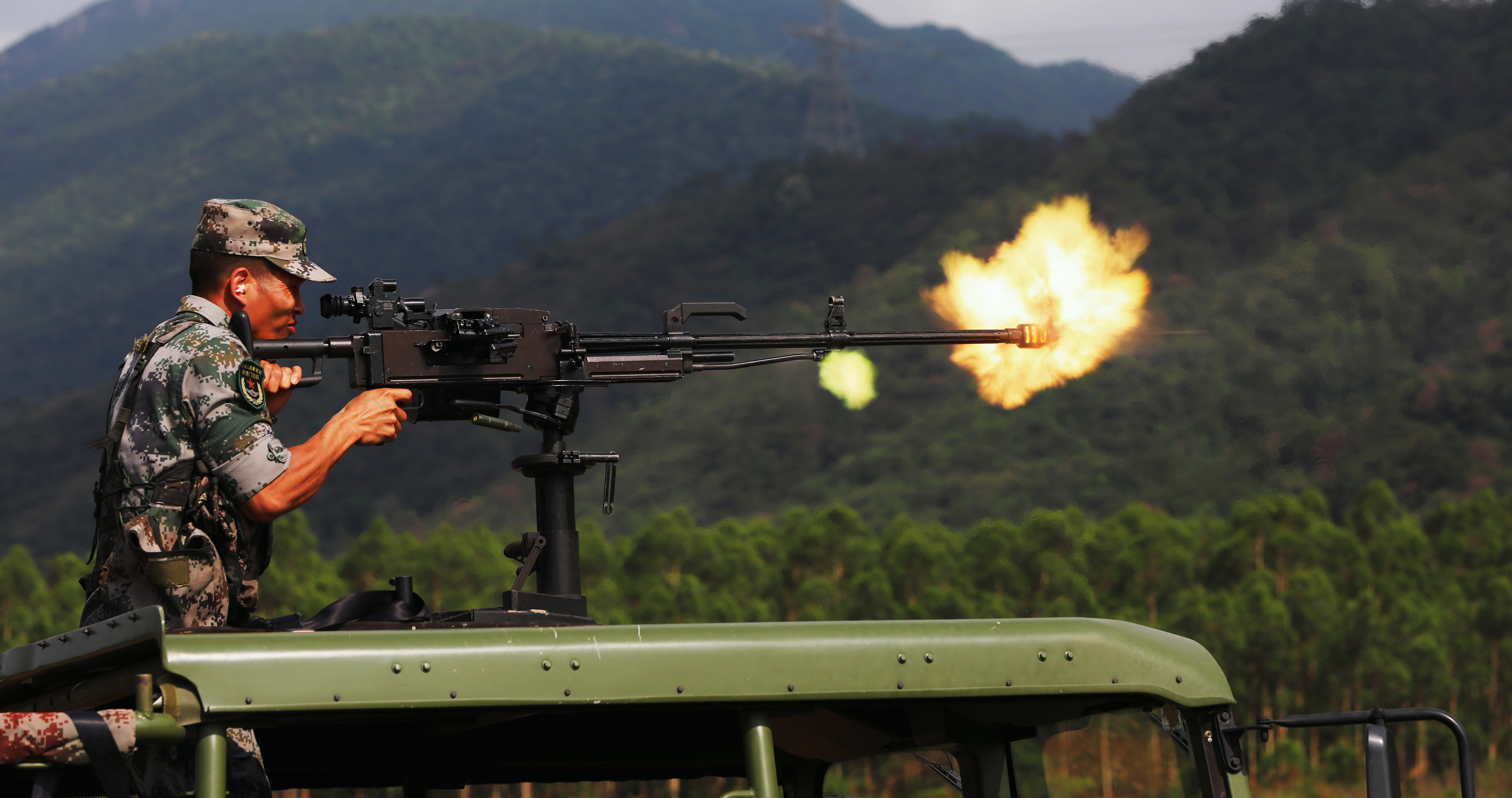 车载重机枪实弹射击训练。方钊 摄