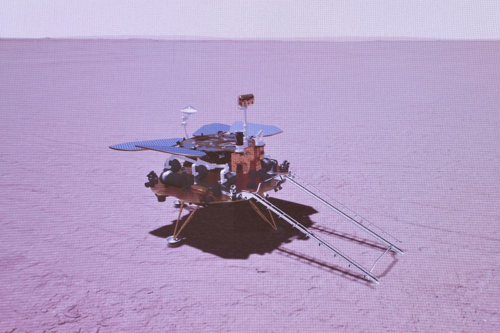 火星探测器着陆火星表面模拟图(5月15日摄)。新华社记者金立旺摄