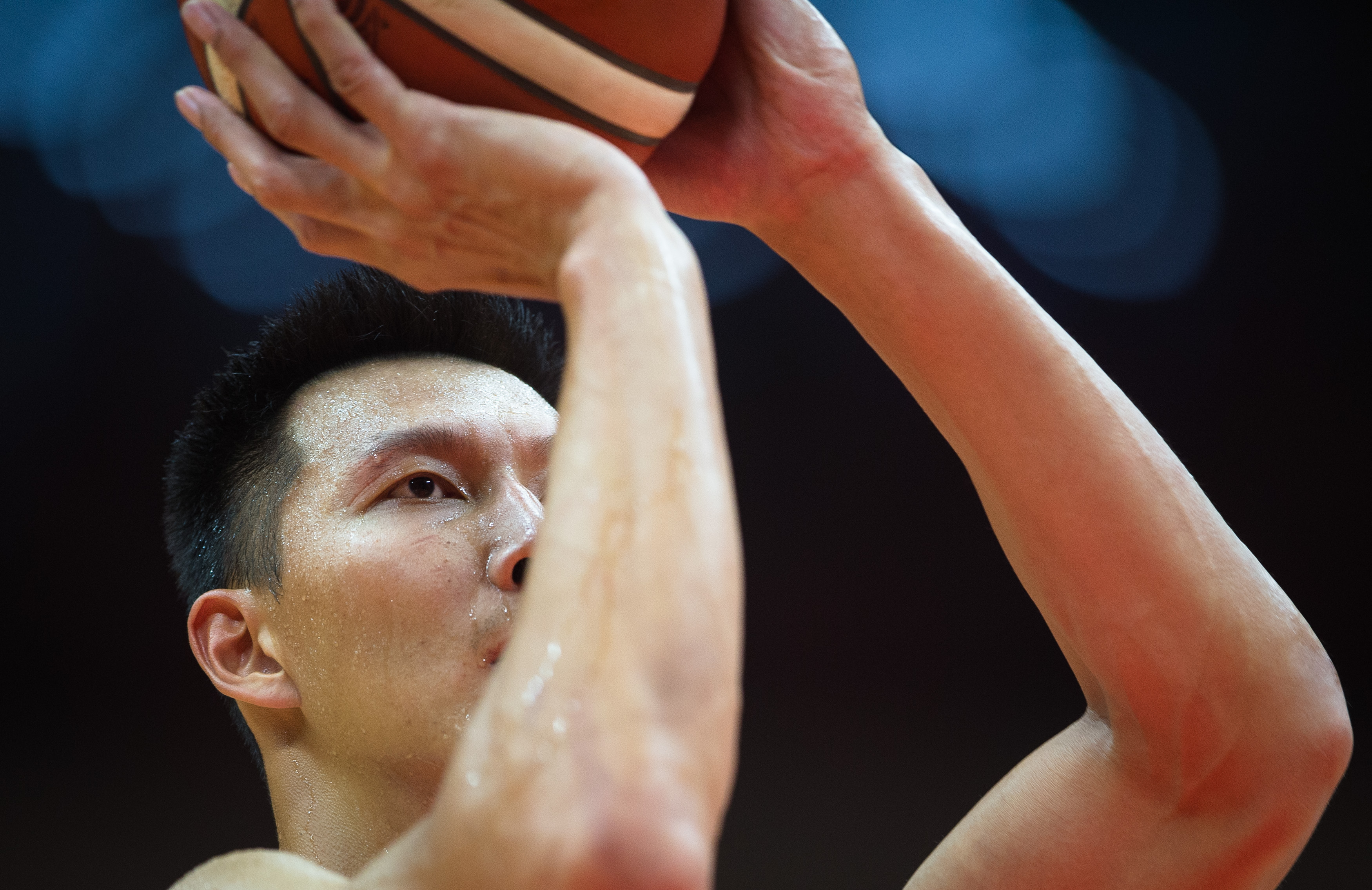 易建联在比赛中罚球。新华社记者肖艺九摄