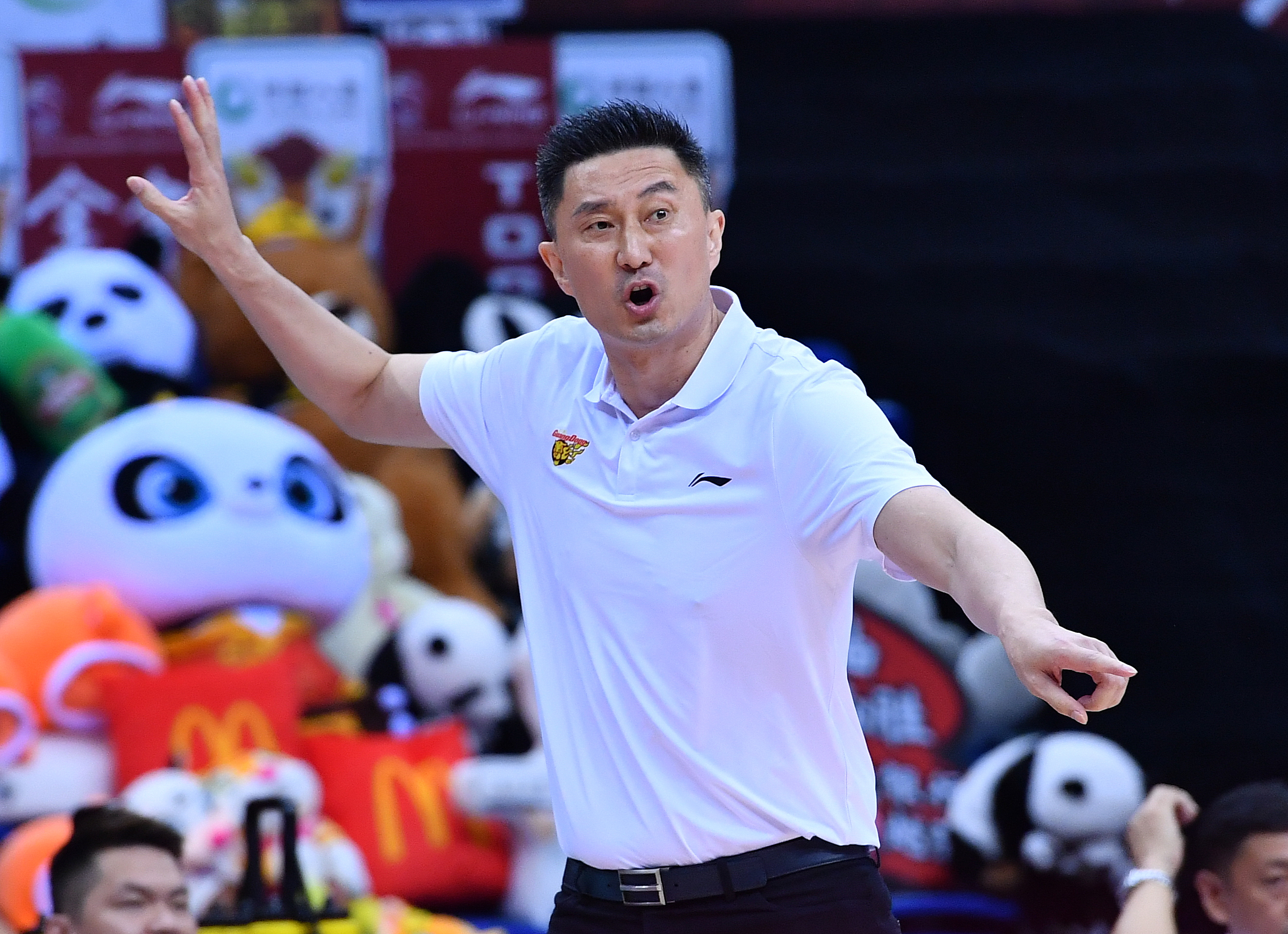 杜锋(左)在比赛中指导球员。新华社记者江汉摄