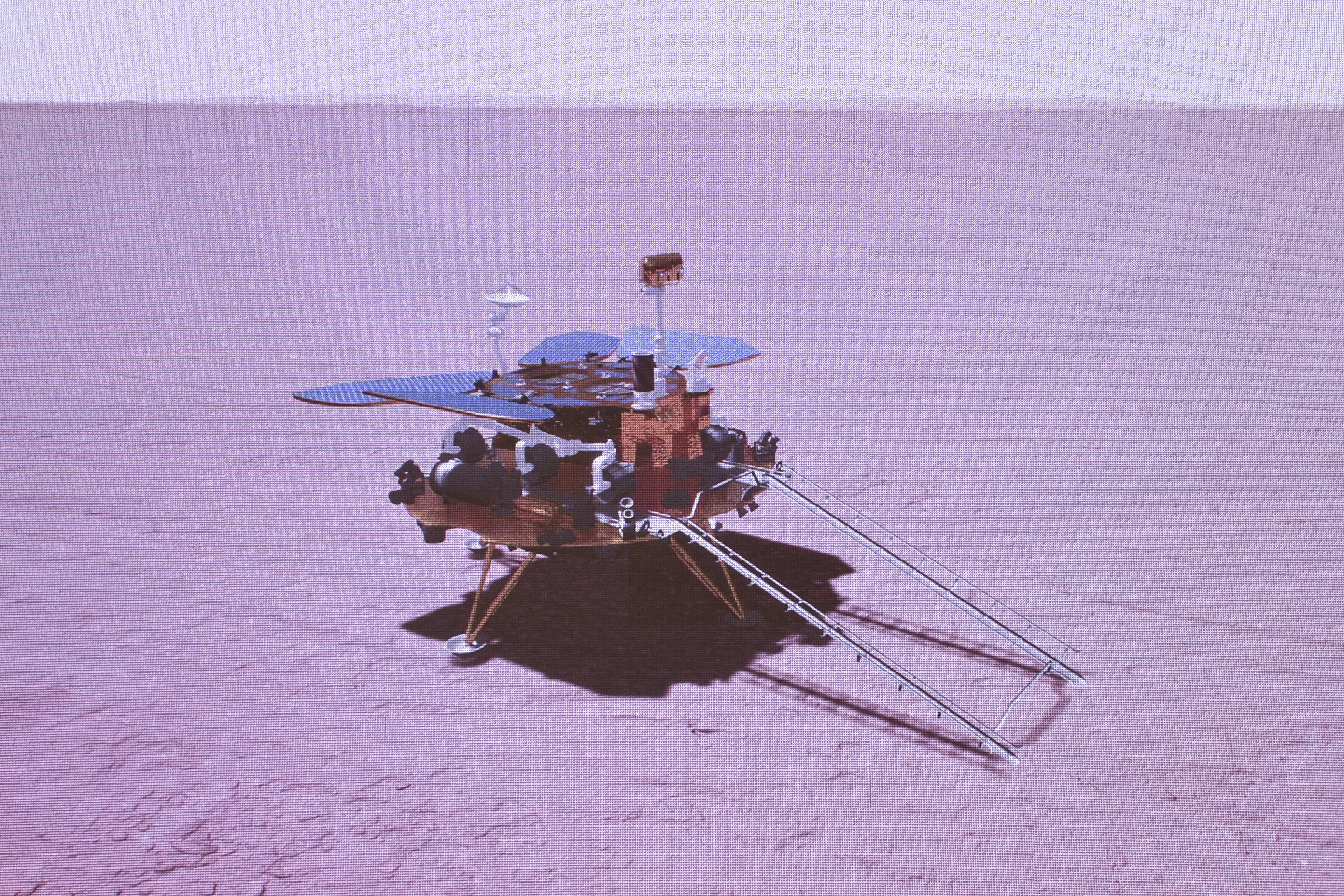 火星探测器着陆火星表面模拟图(新华社记者金立旺 5月15日摄)