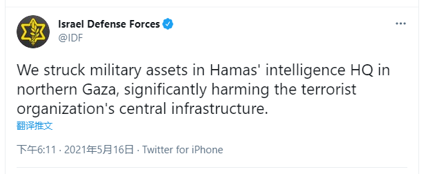 在此期间,以色列国防军在社交媒体上称,以军“重创”了位于加沙地带北部的哈马斯情报总部。
