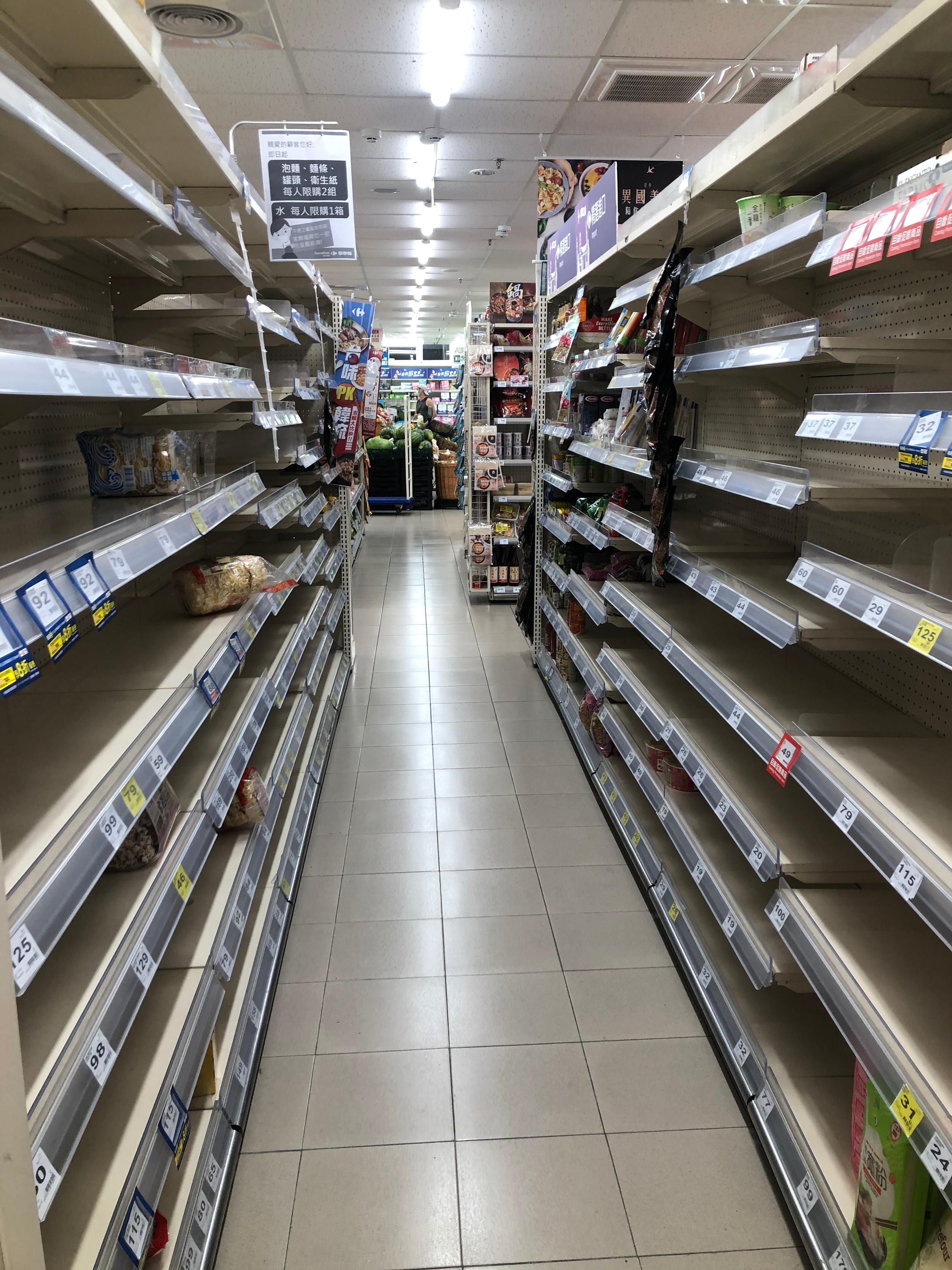 在家乐福超市内,正在购物的市民庄女士说,周末看到电视上转播各大卖场涌入大波市民抢购民生和防疫物资,她不敢凑热闹,特意在周一前来补货。可惜,泡面、罐头、鸡蛋、蔬菜、卫生纸等货架仍然空空如也,她打算再到别家看看。另一位正在购物的孙先生说,自己没有囤货的习惯,但害怕疫情再恶化会升级为封城,所以决定一下子储备一两个月的物资。