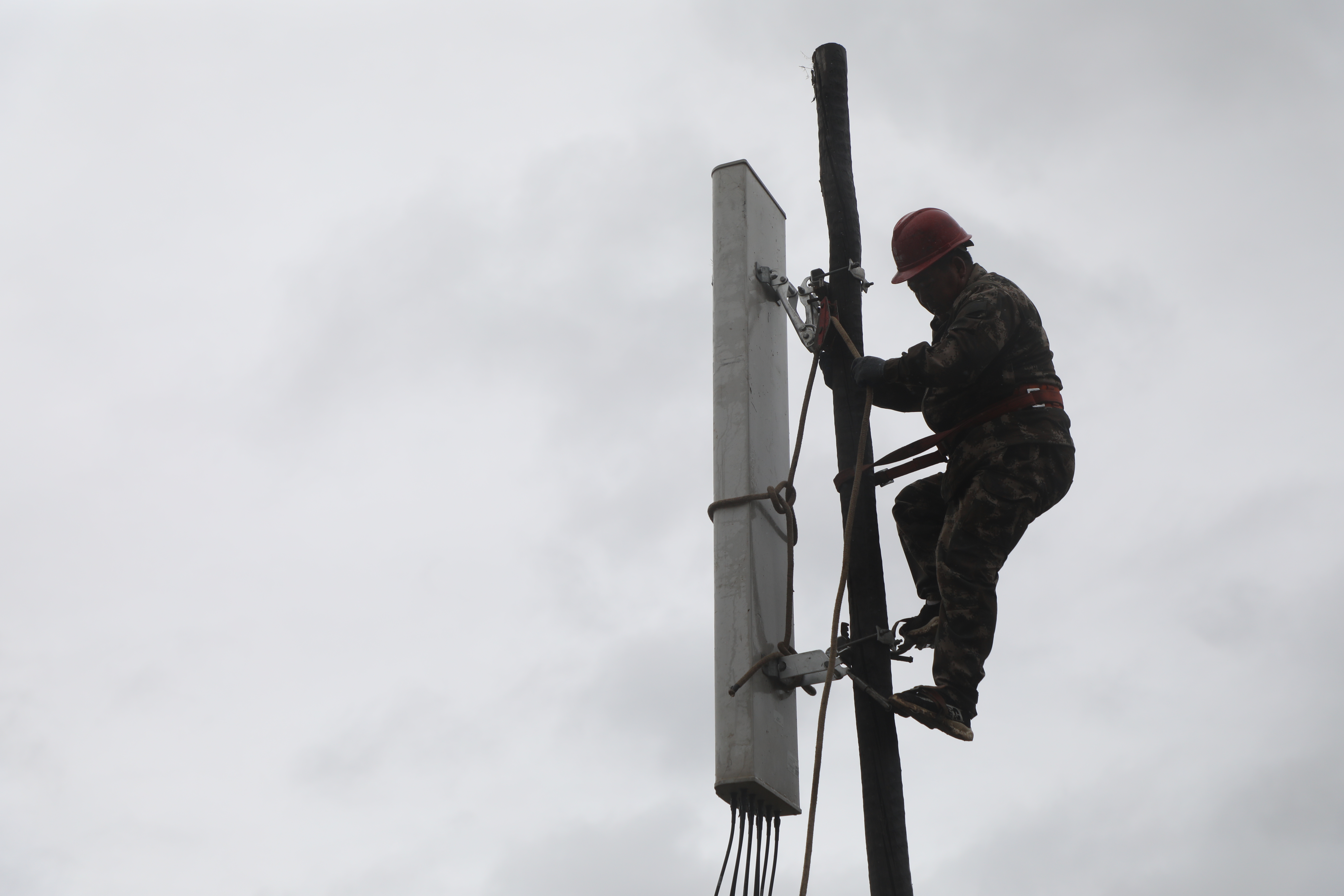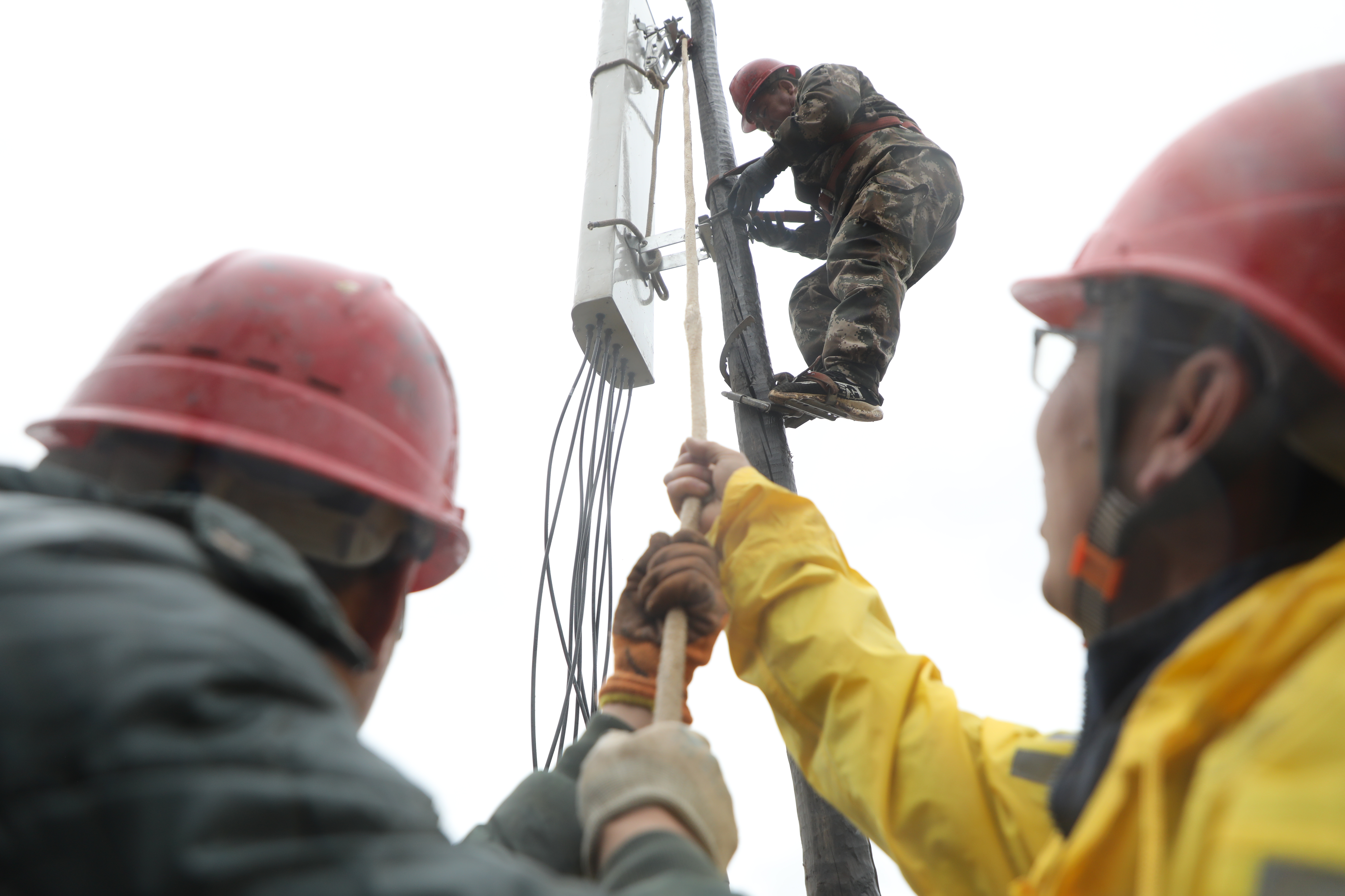 工作人员正在安装拉远基站设备(5月15日摄)。新华社记者张睿 摄