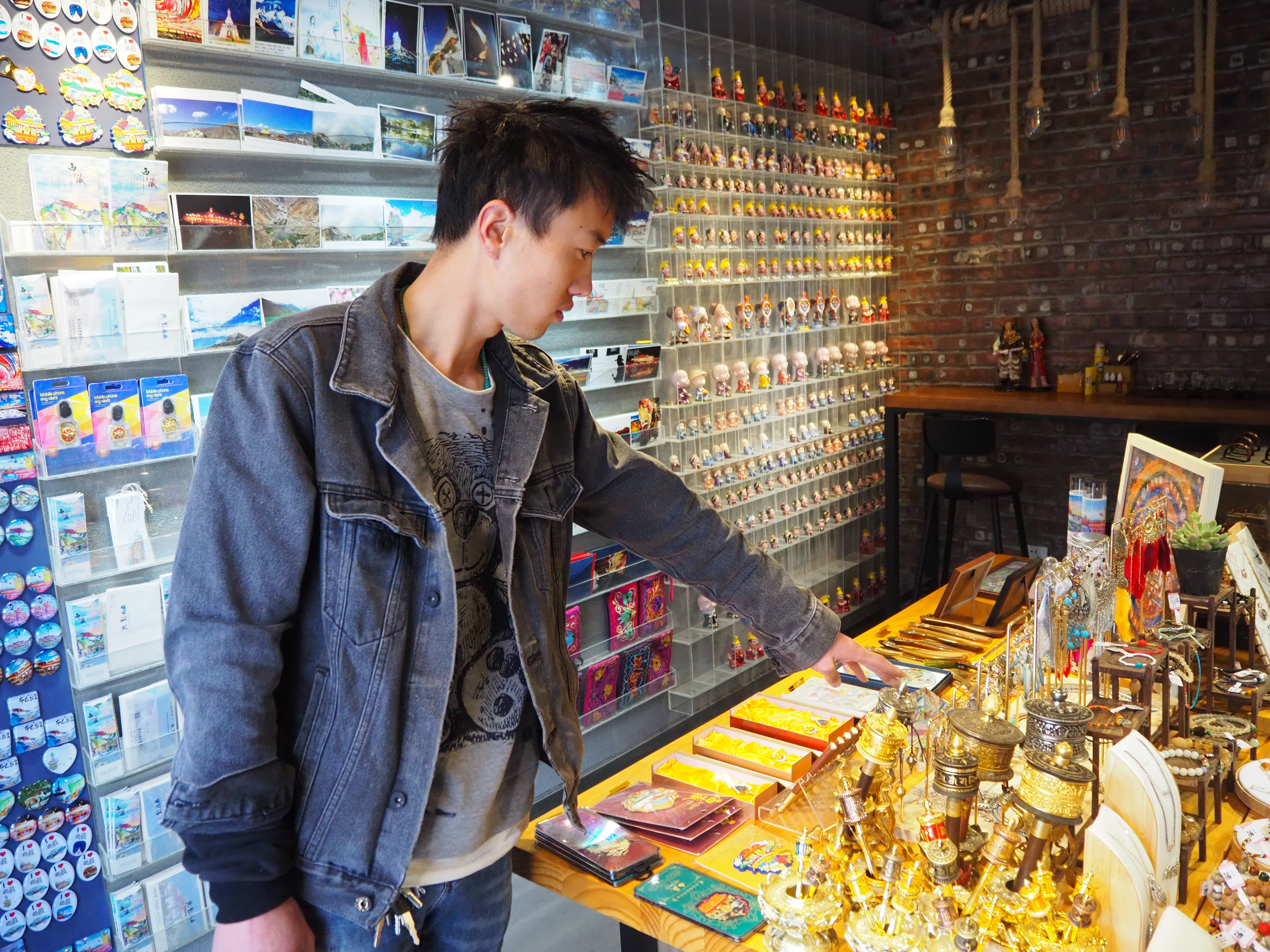 40多平方米的小店四周摆放着货架,西藏特产和文创产品整齐地码在上面,没有一点灰尘。