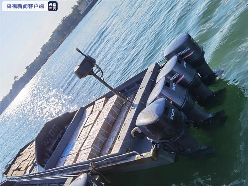 5月11日凌晨3时许,防城港海警局在防城港市防城区万欧村对出海域发现一艘涉嫌走私香烟的高速摩托艇,经检查,该艘摩托艇尾部搭载4台200匹马力汽油发动机,查扣香烟共14950条,案值约250万元。