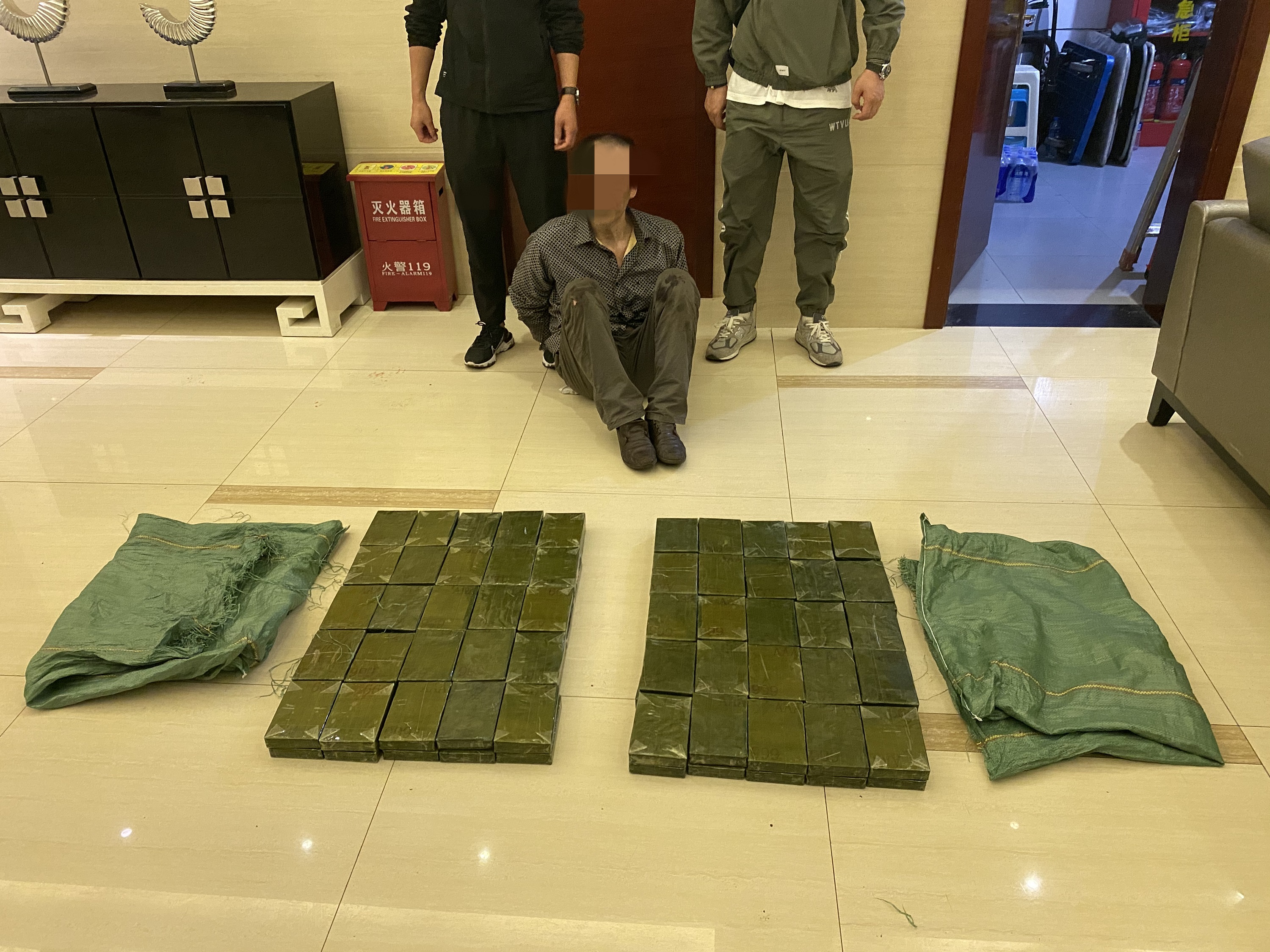 5月8日警方抓获的嫌疑人及查获的海洛因可疑物(云南昆明铁路公安处供图)