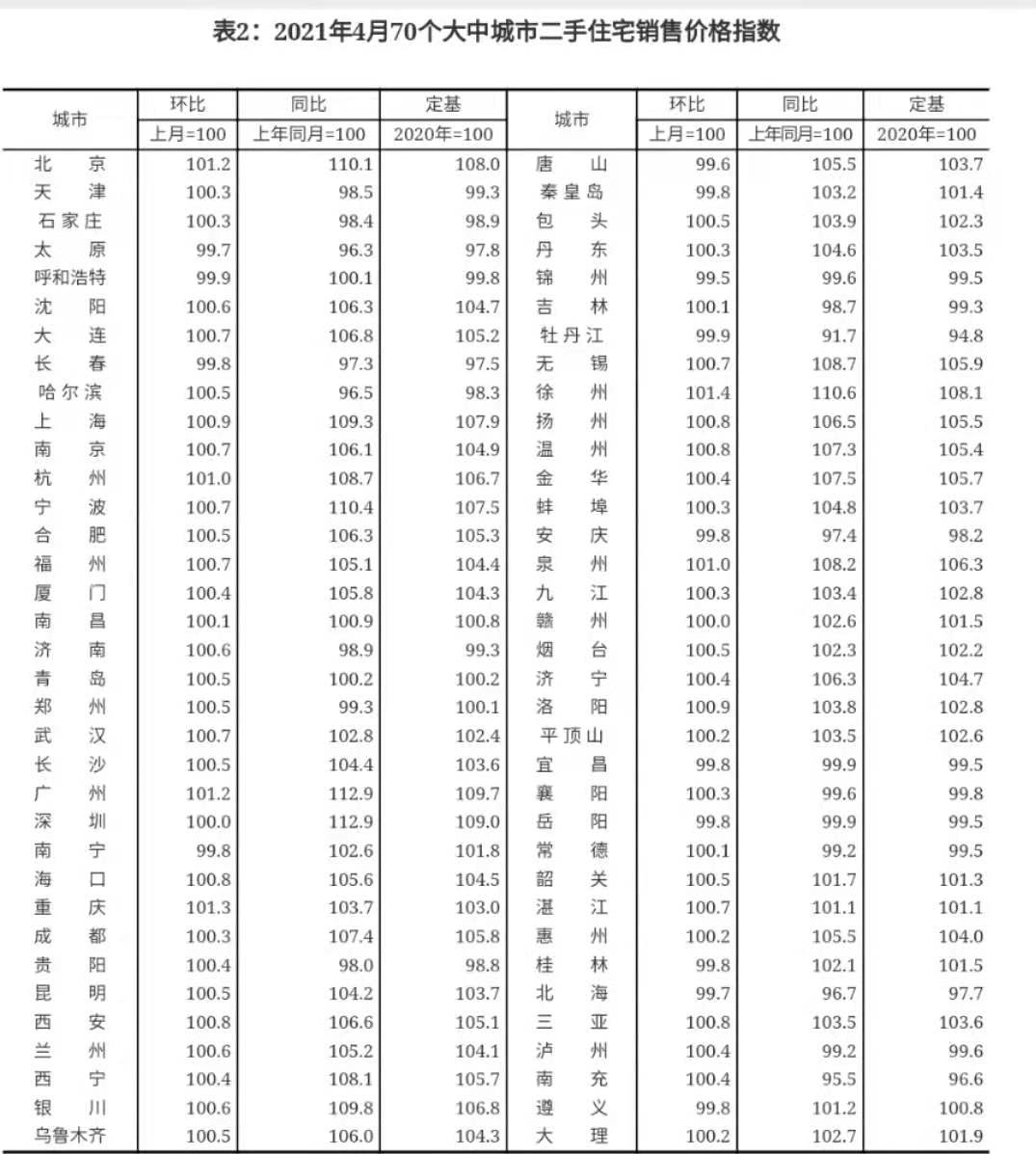 从房价环比上涨城市数量变化来看,2021年4月份,新建商品住宅价格环比上涨的城市数量有62个,与上个月相同;下跌的城市有5个,比上个月少1个;3个城市房价环比持平。其中,环比最高增幅为重庆的1.4%;最大降幅为安庆、泸州和北海的-0.3%。