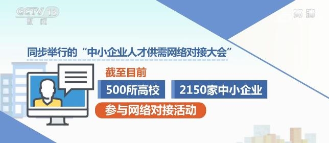 同步举行的“中小企业人才供需网络对接大会”,截至目前,已有500所高校、2150家中小企业参与网络对接活动。