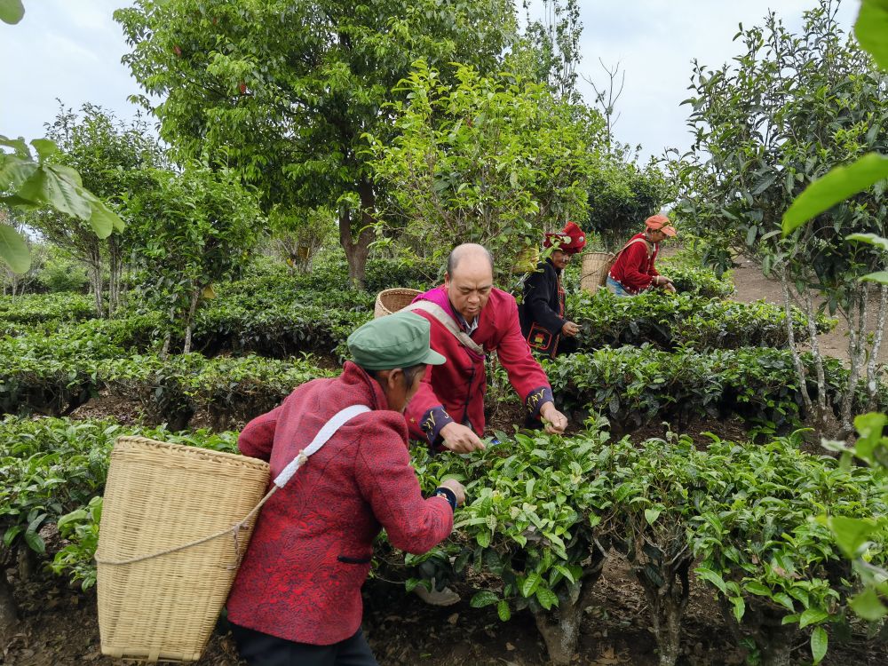 4月29日,云南省普洱市澜沧县的茶农正在茶地里采茶 。刀剑龙摄