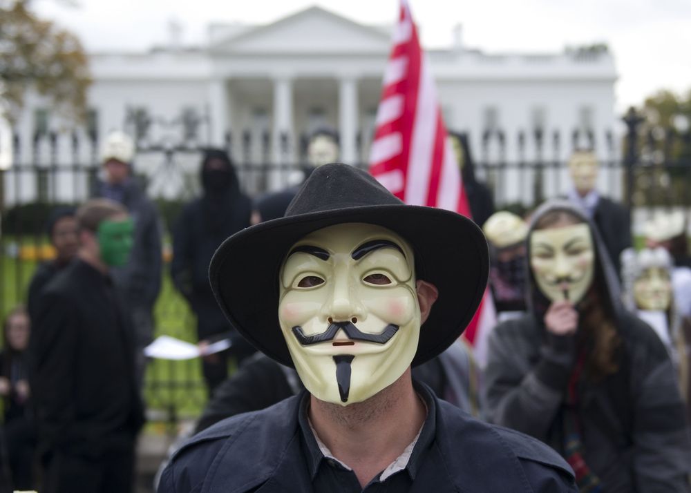 2013年11月5日,国际黑客团体“匿名者”的支持者在白宫门前举行示威活动。(新华/法新)