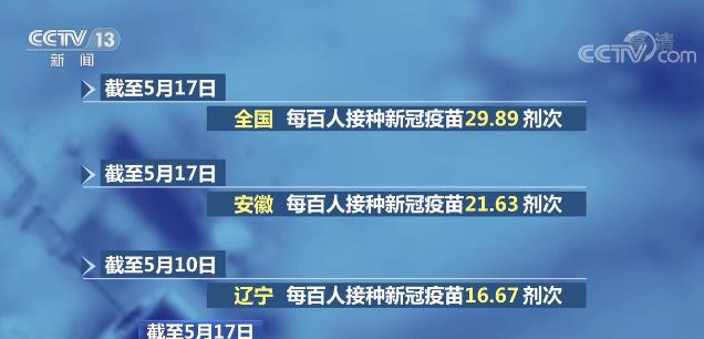 截至5月17日全国每百人接种新冠疫苗29.89剂次