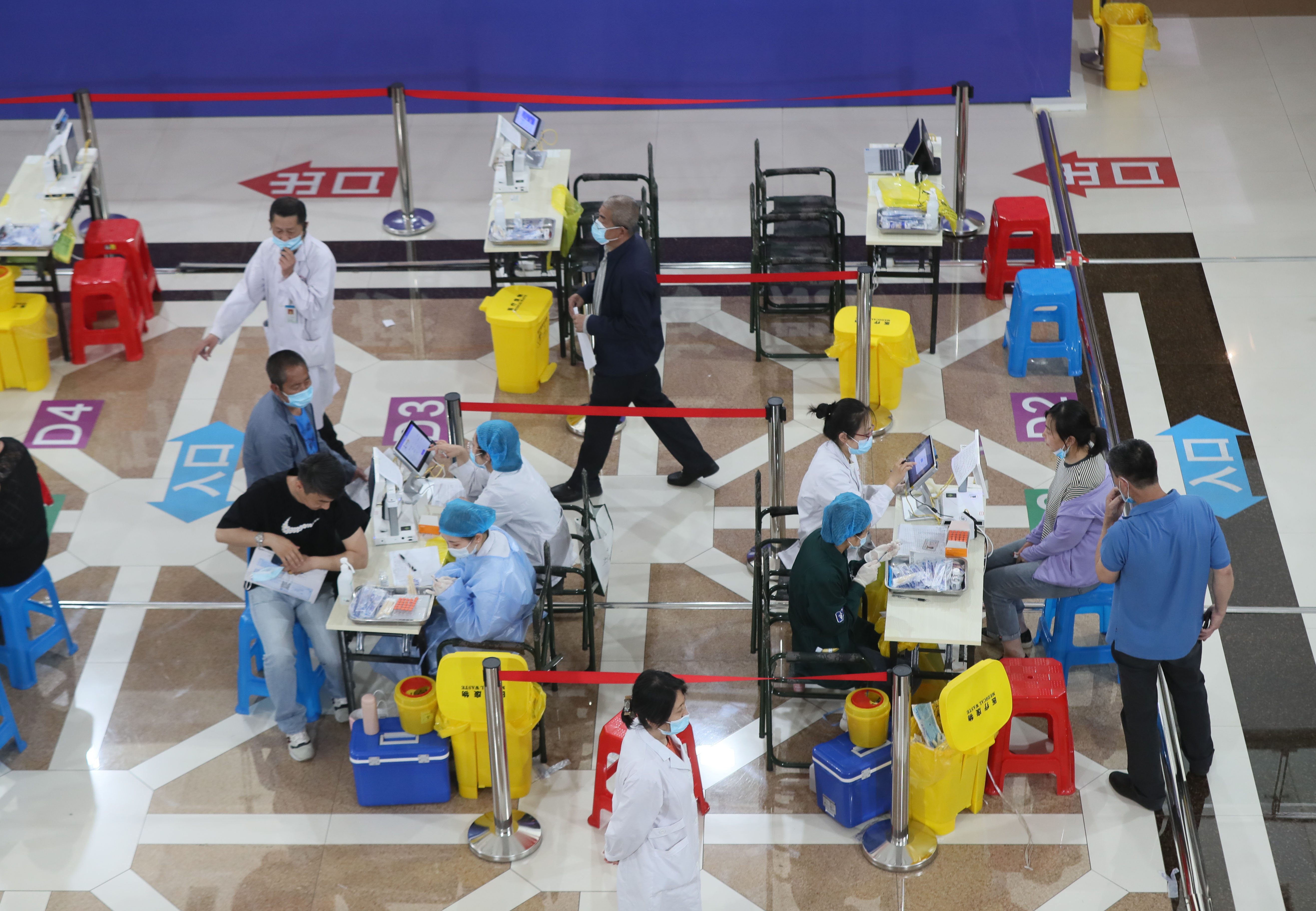 5月18日,市民在沈阳市大东区新冠疫苗接种方舱接种新冠疫苗。新华社记者 杨青 摄