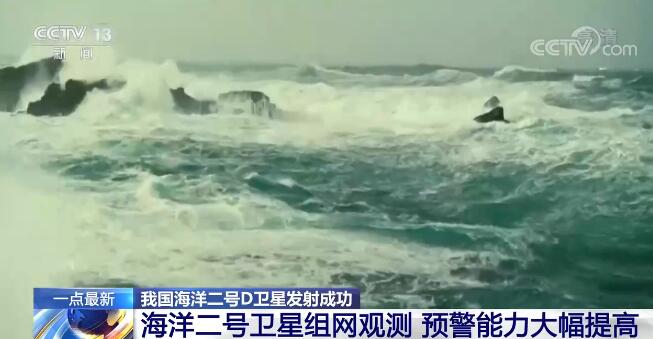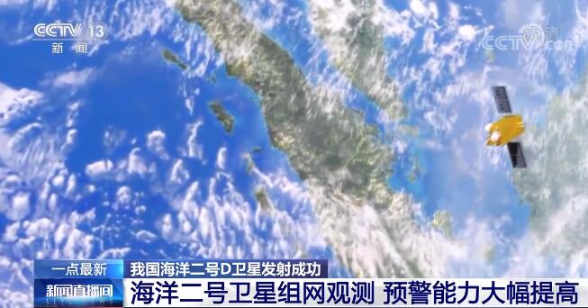 今天发射的海洋二号D卫星是我国海洋二号系列的第四颗星。此前发射的海洋二号A卫星在去年11月份停止业务化运行。海洋二号D星进入预定轨道后将和在轨运行的海洋二号B星和C星实现组网观测,海洋灾害预警能力将大幅提高。