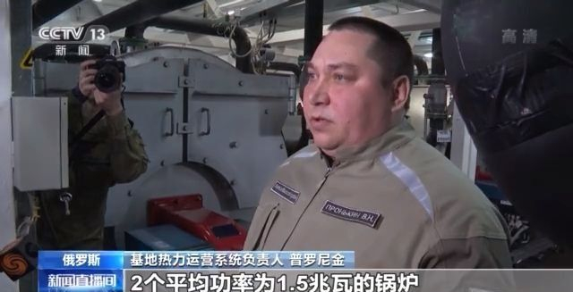 基地热力运营系统负责人 普罗尼金:2个平均功率为1.5兆瓦的锅炉通过控制面板采用自动模式运行。现在只有1个锅炉在工作,冬天极寒或者大风天气时会启动2个锅炉,平时1个锅炉就足够了。