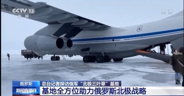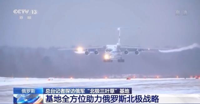 总台记者 宋瑶:我们从俄罗斯的北方城市摩尔曼斯克出发,乘坐俄罗斯国防部的伊尔-76飞机,前往此行的目的地——俄罗斯“北极三叶草”军事基地。