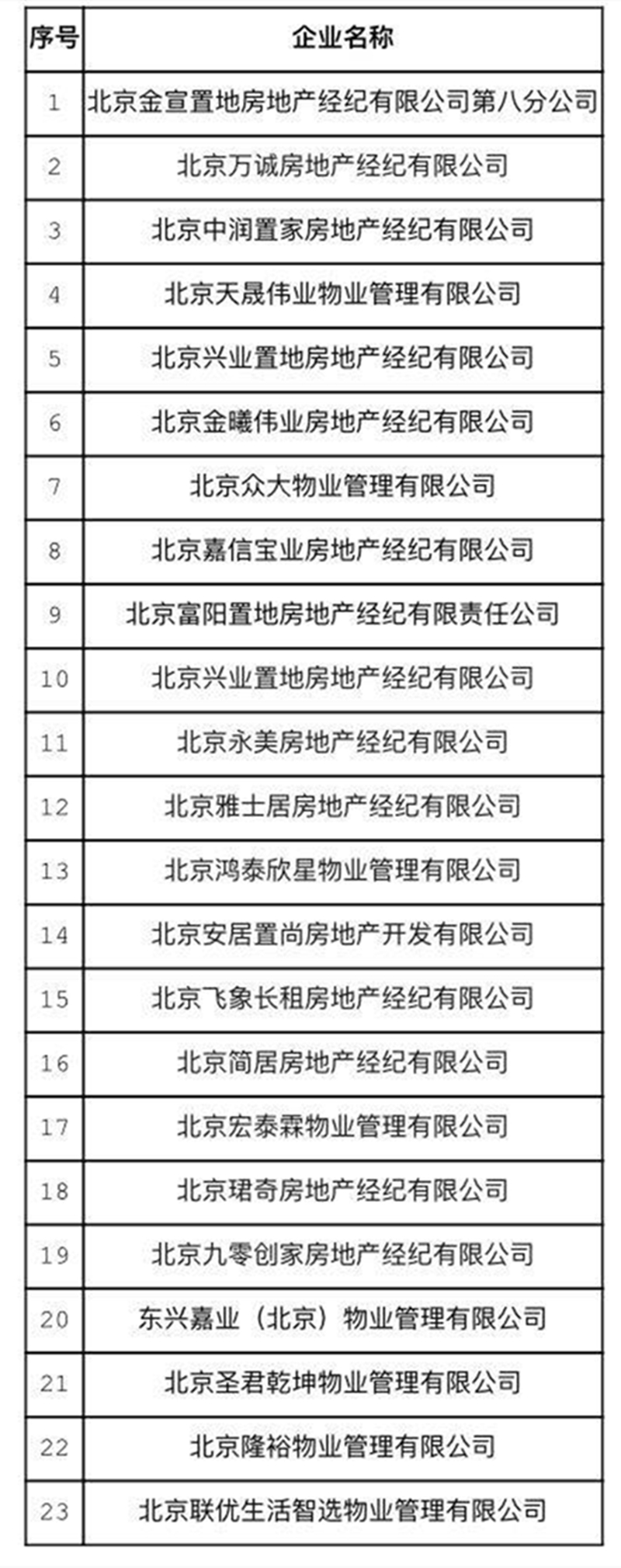 今日,北京市、区住建部门结合日常监管和信访投诉处理情况,梳理出第三批共23家重点关注企业名单,提示广大消费者谨慎选择。