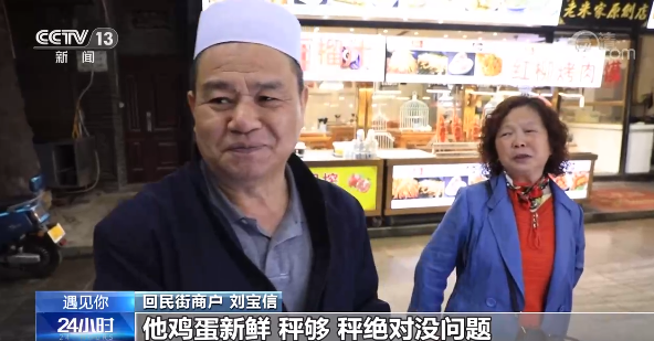 回民街商户 刘宝信:二三十年的关系了,只要我说话,他就知道是我。谁的(鸡蛋)都不要,就是固定要他的。他鸡蛋新鲜,秤够,秤绝对没问题。