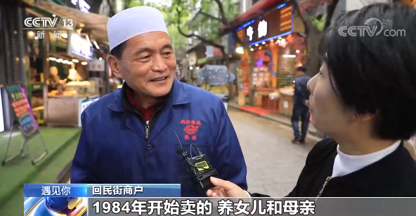 回民街商户:1984年开始卖的,养女儿和母亲,现在母亲84了,太厉害了。