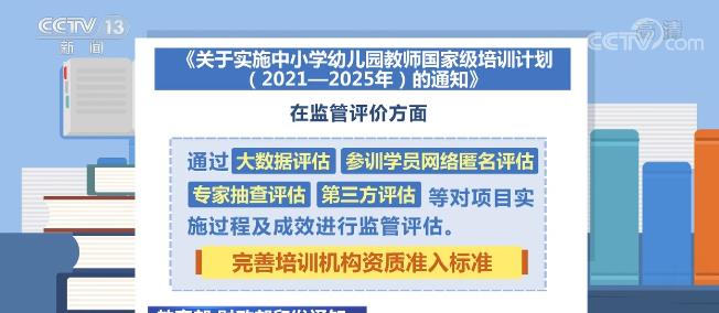在监管评价方面,《通知》要求通过大数据评估、参训学员网络匿名评估、专家抽查评估和第三方评估等对项目实施过程及成效进行监管评估。完善培训机构资质准入标准。将具备利用信息化手段进行培训过程管理的条件和能力作为培训机构遴选的重要指标之一。