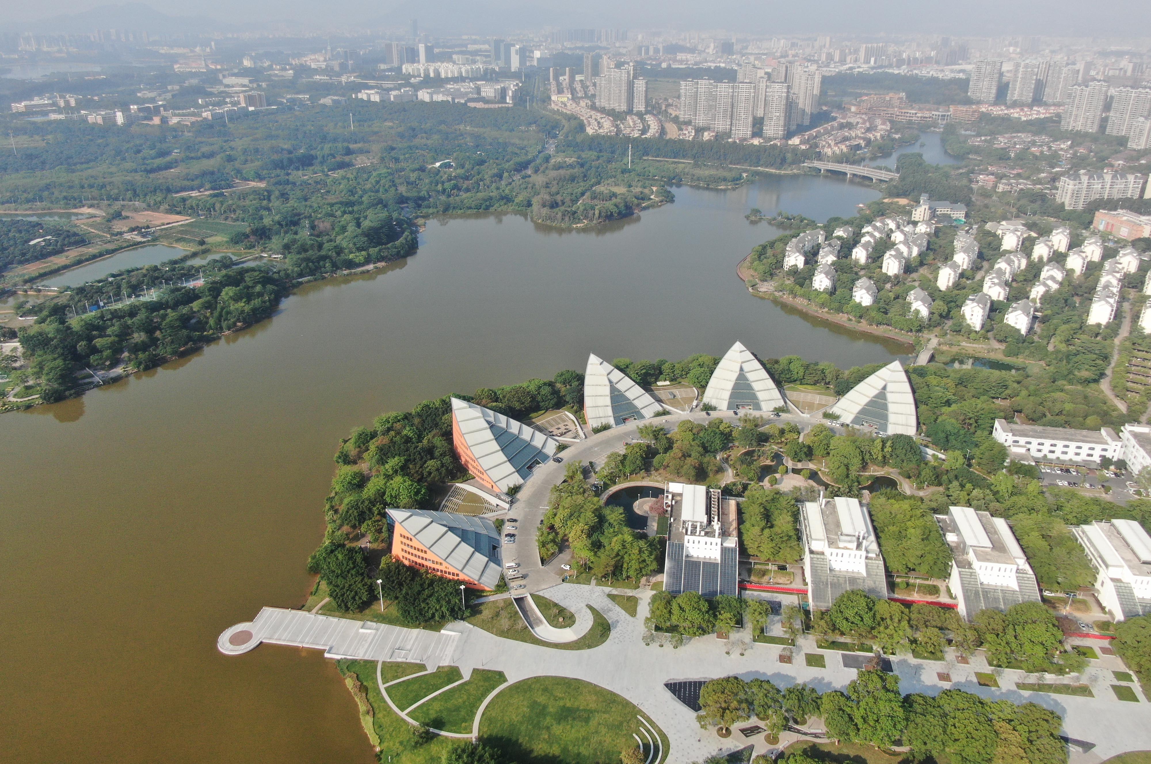 这是2021年4月21日无人机拍摄的东莞松山湖风景。大湾区综合性国家科学中心先行启动区(松山湖科学城)2021年4月22日在广东省东莞市全面启动。新华社记者 邓华 摄