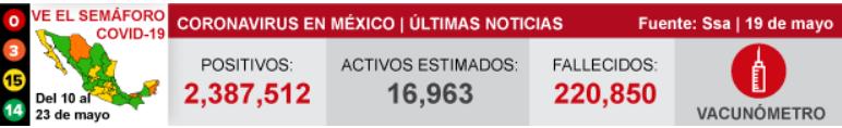 当地时间5月19日,墨西哥卫生部宣布,截止到5月19日晚上7点,墨西哥全国累计2387512例新冠肺炎确诊病例,较前一天新增了2000例。墨西哥全国新冠肺炎死亡病例较前一天新增104例,总数已经上升到220850例。(总台记者 盛嘉迪 吕兴林)