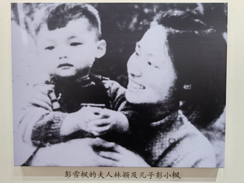 安徽泾县新四军军部旧址展出的彭雪枫夫人林颖及儿子彭小枫照片。(新华社记者 马姝瑞摄)