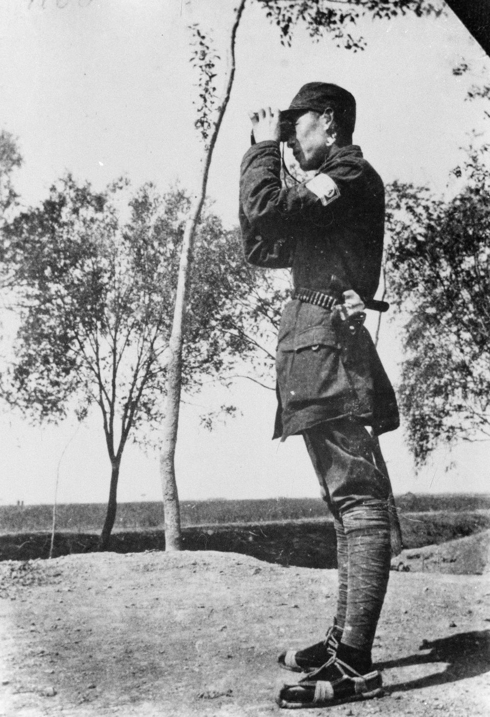 彭雪枫在阵地前察看敌情。(资料照片 新华社发)
