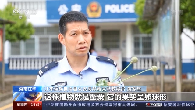 江华瑶族自治县公安局禁毒大队教导员 虞家辉:这株植物就是罂粟,它的果实呈卵球形,叶子边缘成锯齿形。它就是鸦片、海洛因的原植物。