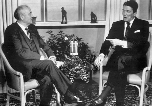 1986年10月11日,当时的苏联领导人戈尔巴乔夫和美国总统里根在冰岛首都雷克雅未克开始为期两天的会谈。新华社发(传真照片)