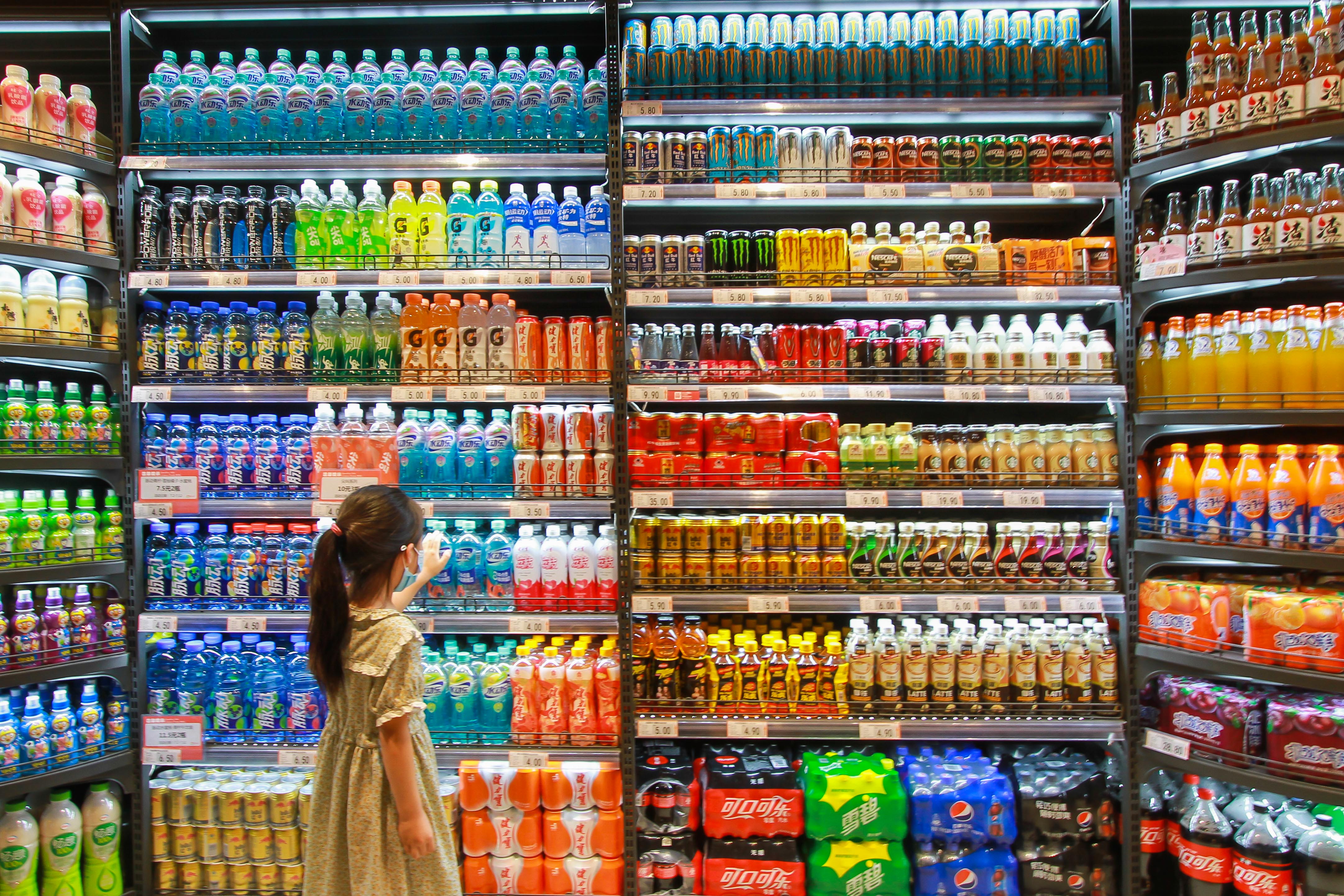 2020年7月9日,一名小朋友在河北省邯郸市一家超市购买饮料。新华社发(李昊 摄)