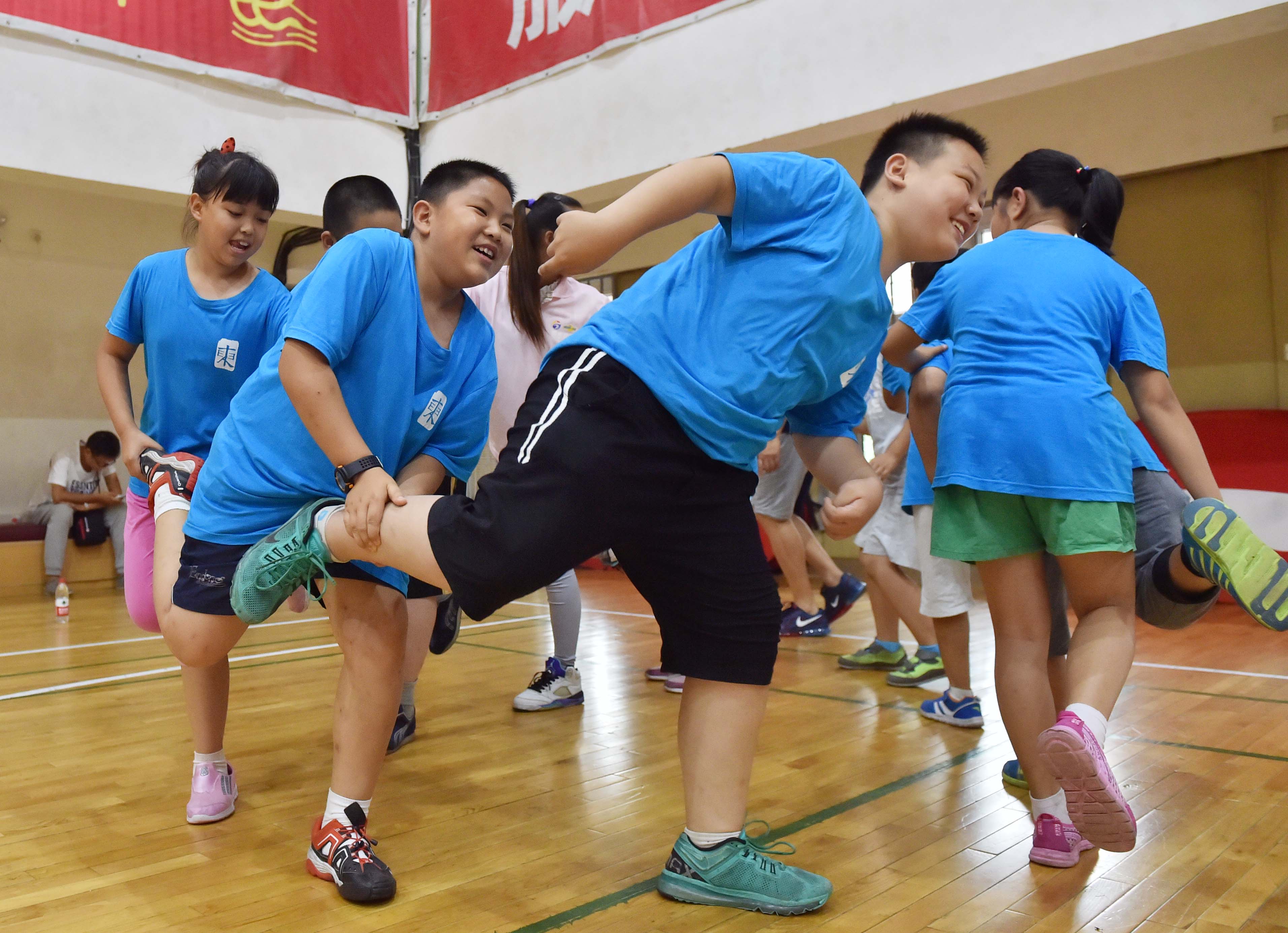 2015年7月16日,在“小壮壮”暑期训练营,学生正在进行趣味训练。新华社记者李文摄