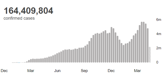根据世卫组织最新实时统计数据,截至欧洲中部夏令时间5月20日11时08分(北京时间5月20日17时08分),全球累计新冠肺炎确诊病例164409804例,累计死亡病例3409220例。(总台记者 朱赫)