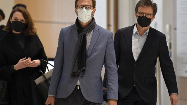 △该案被告之一、萨科齐2012年竞选团队副总监拉夫里厄抵达庭审现场(图片来自法国媒体)