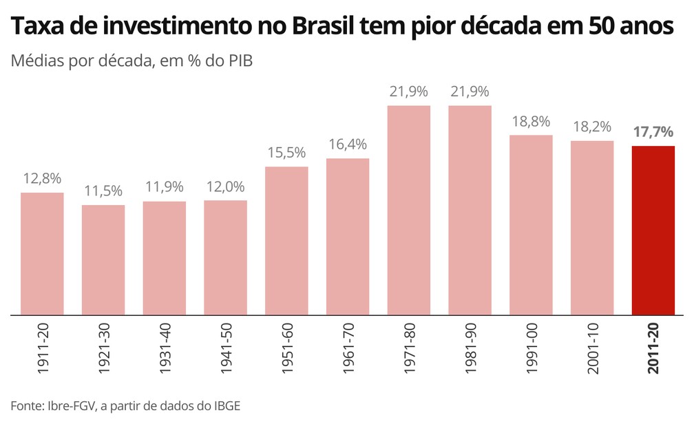 南美最大智库瓦加斯基金会经济研究院近日调查显示,巴西自2011年至2020年期间平均年投资率只占国内生产总值(GDP)的17.7%,远低于上个世纪七八十年代年平均21.9%的投资率,为半个世纪以来的最低水平。