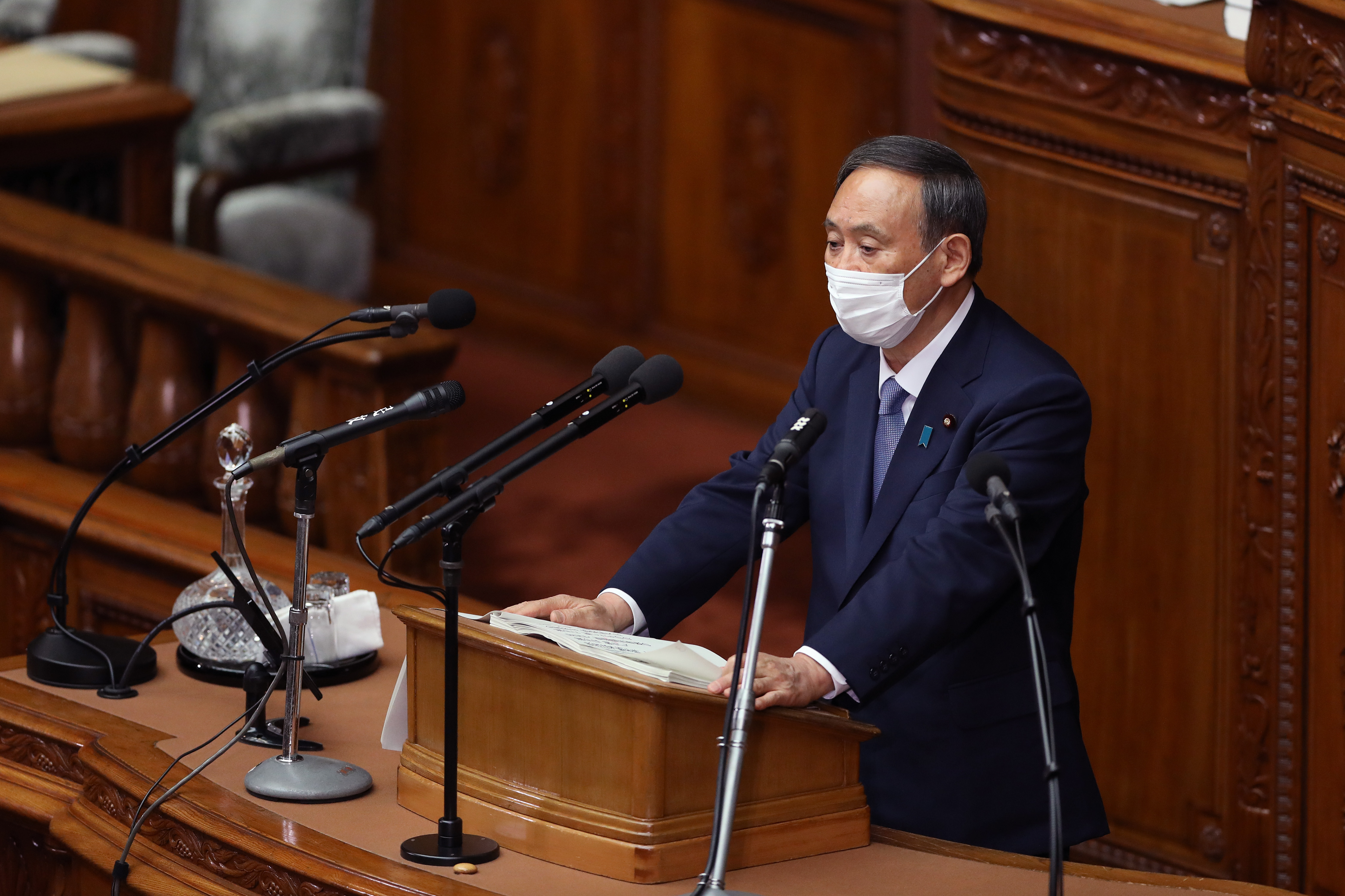 资料图:日本首相菅义伟在国会上发言。新华社记者杜潇逸摄