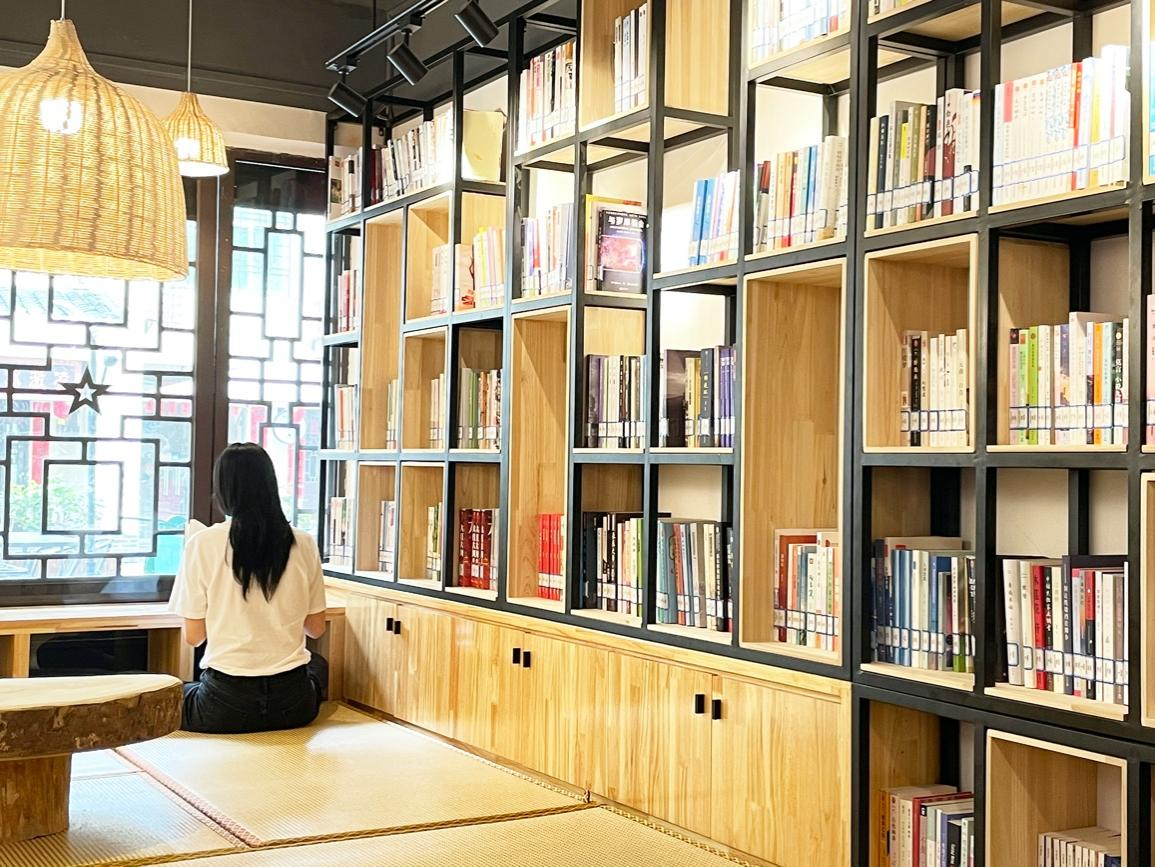 红井步行街苏房中游客正在看书(央视网记者 王汝希摄)