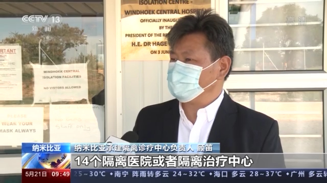 纳米比亚承建隔离诊疗中心负责人 顾笛:我们陆陆续续从去年5月份到今年1月份,我们一共为纳米比亚建设了14个隔离医院或者隔离诊疗中心,在首都(温得和克)鲸湾等14个城市大约建设了150间隔离病房,都是负压病房,保证病房内的病毒不往外扩散。