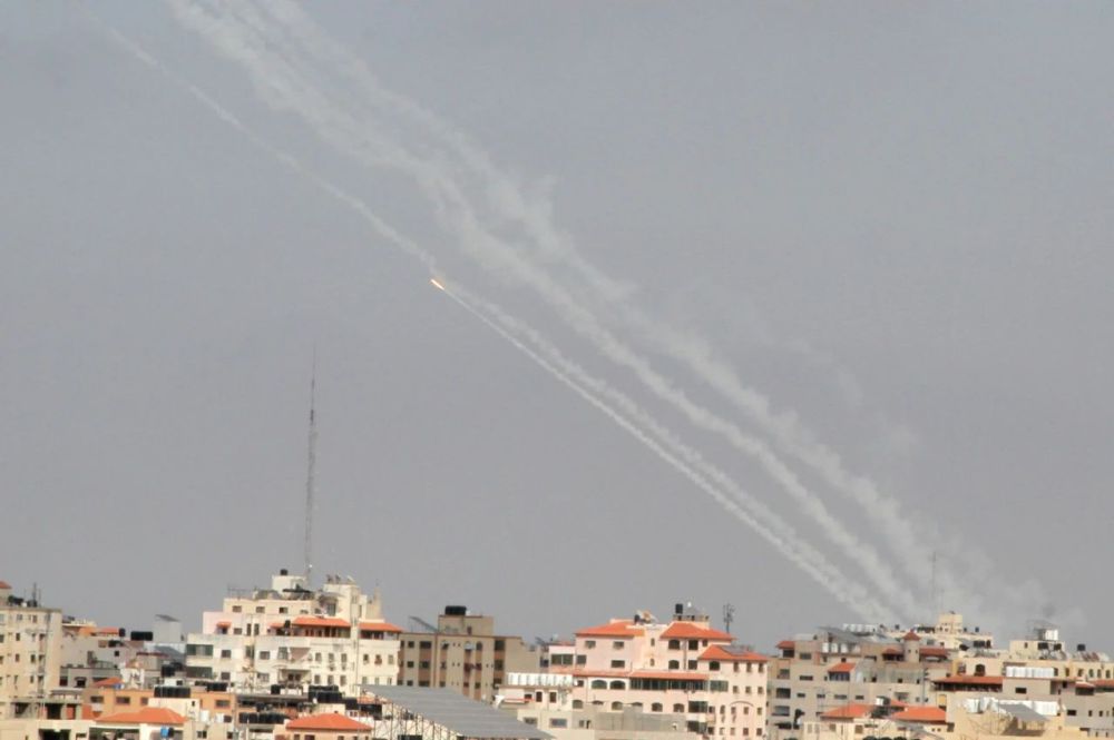 这是5月20日拍摄的从加沙地带北部向以色列境内发射的火箭弹冒出的浓烟。新华社发(里泽克·阿卜杜勒·贾瓦德摄)