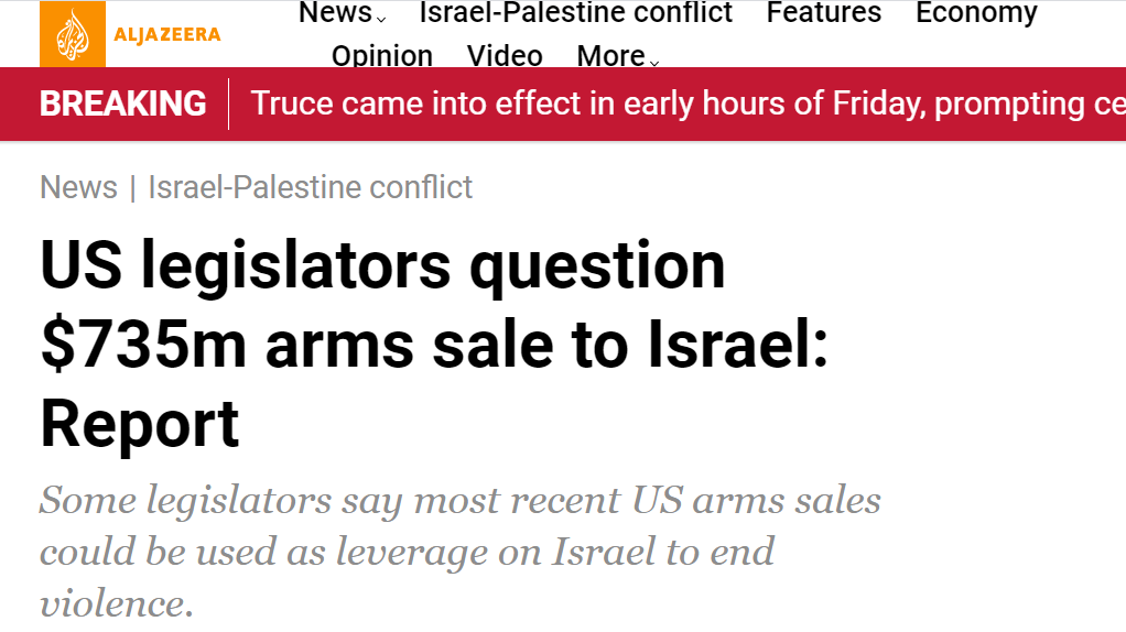 在近日巴以之间爆发七年来最严重的流血冲突中,加沙地带巴勒斯坦人伤亡不断上升时,美国政府批准向以色列出售7.35亿美元精确制导武器也引发其国内网友炮轰。