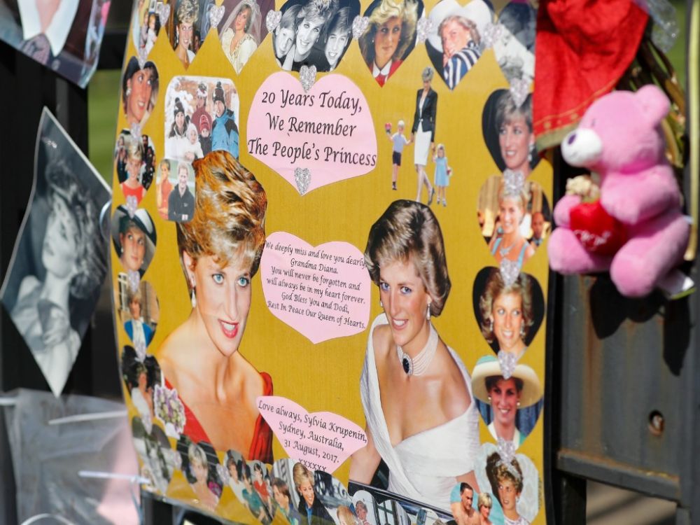 2017年8月31日在英国伦敦肯辛顿宫门前拍摄的人们摆放的照片和卡片。2017年8月31日是戴安娜王妃去世20周年纪念日。(新华社记者韩岩摄)