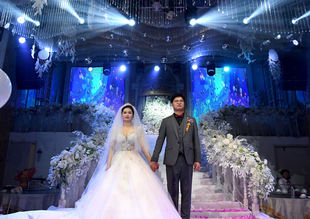 5月20日,刘光耀、乔冰在婚礼上拥抱。