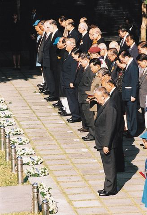 △1998年12月28日,香港特别行政区政府在大会堂举行隆重的“原东江纵队港九独立大队阵亡战士名册安放仪式”。