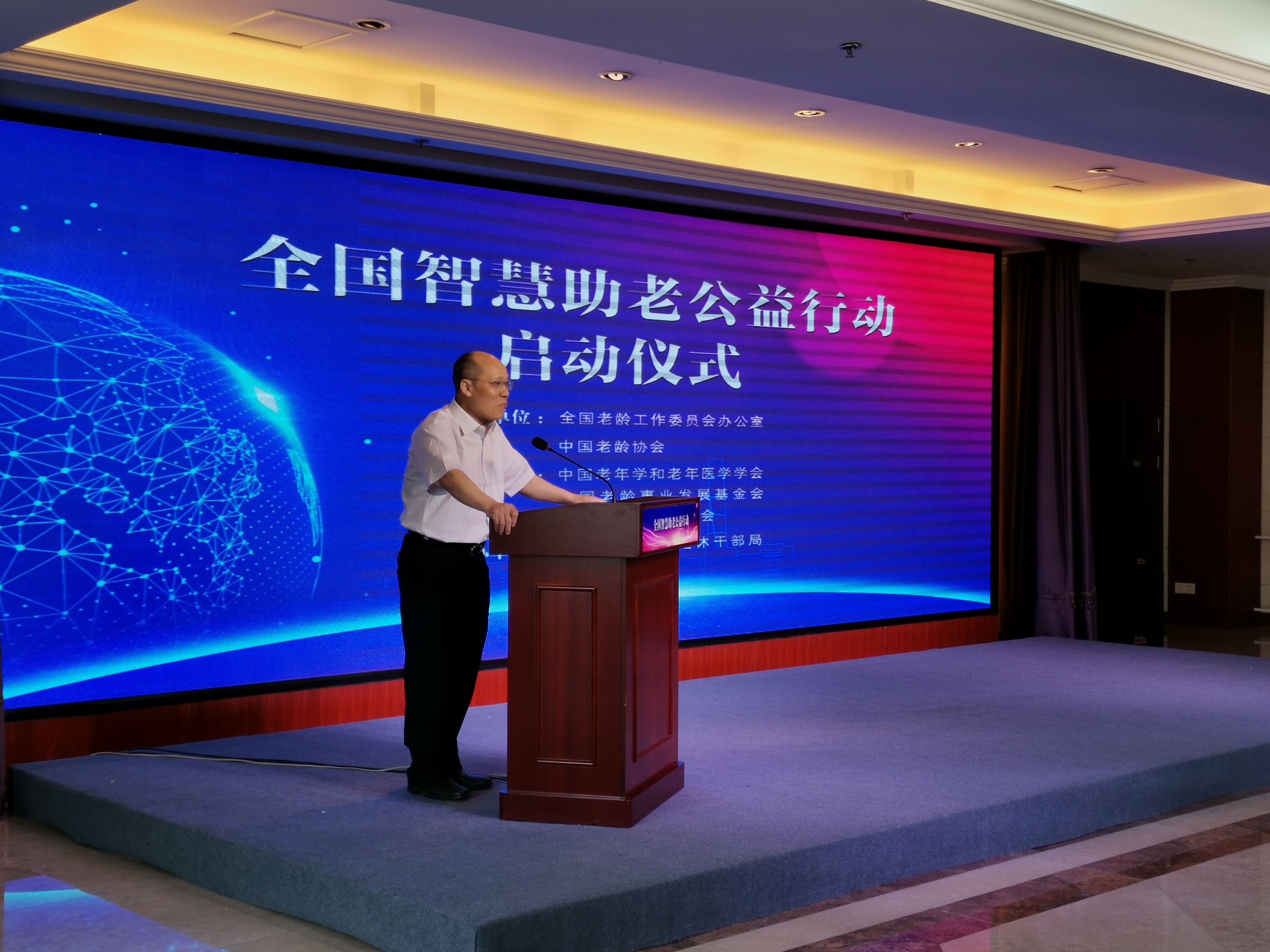 中国老龄协会副会长肖才伟在“智慧助老公益行动”启动仪式上致辞。新华社记者田晓航 摄