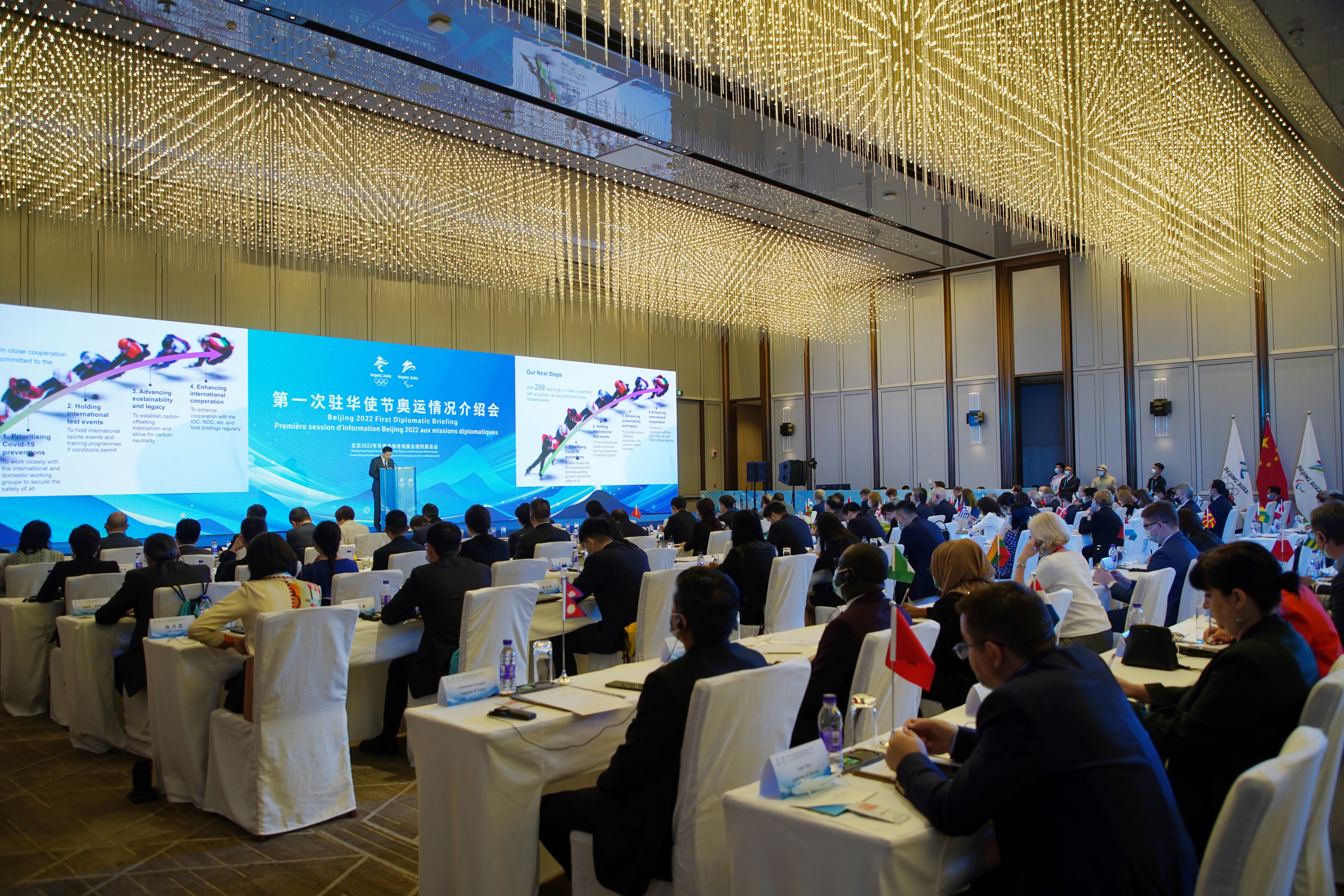 新华社北京5月21日电(记者汪涌、姬烨)北京冬奥组委21日在北京冬奥会国际贵宾官方接待酒店举办了首次驻华使节奥运情况介绍会,来自70余国的上百位驻华使节及高级外交官出席了此次活动。