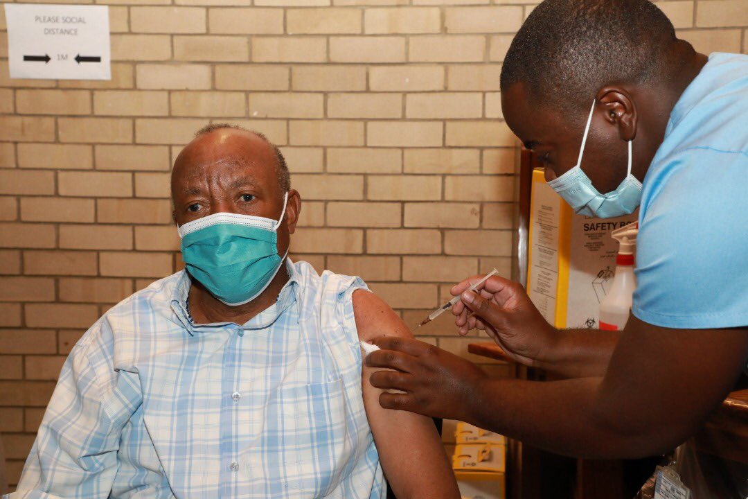 当地时间5月21日,纳米比亚副总统姆本巴在该国温得和克中心医院接种首剂中国国药集团新冠肺炎疫苗。