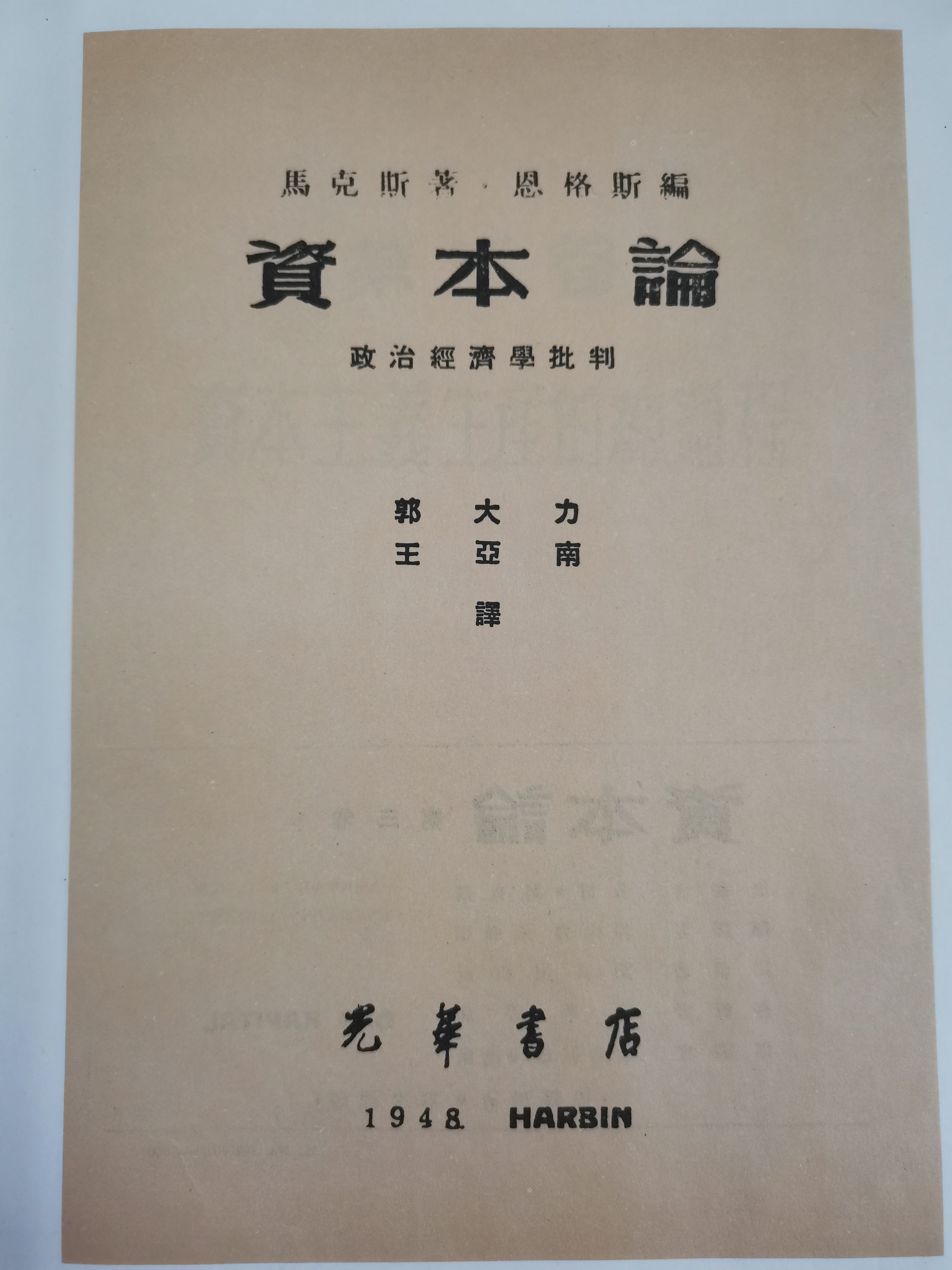 这期间,三卷本《资本论》出版了全译本,即郭大力、王亚楠译本,于1938年8月至9月间由读书生活出版社连续出版。在1940年还专门出版了《<资本论>补遗勘误》郭大力、彭迪先译本。与此相关,被称为《资本论》“第四卷”的三卷本《剩余价值理论》也于1949年5月出版了郭大力译本。为了深入研究马克思在《资本论》中的观点,我国还编译出版了恩格斯对该著的一系列解读文章,有1939年1月出版的《恩格斯论<资本论>》章汉夫、许涤新译本和1939年8月出版的《<资本论>提纲》何锡麟译本两种。
