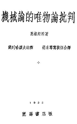 《机械论的唯物论批判》杨东莼、宁敦伍译本